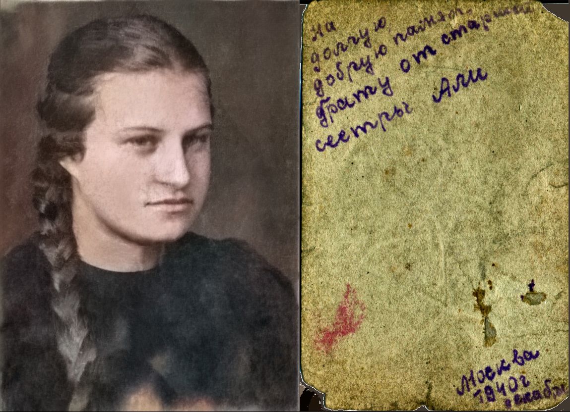 | Изображение | Формат: image/jpeg Размеры картинки: 1 149 × 832 пикселей Размер файла: 207 Кбайт Примечание: Подпись: "На долгую добрую память от старшей сестры Али. Москва 1940, девабрь"
