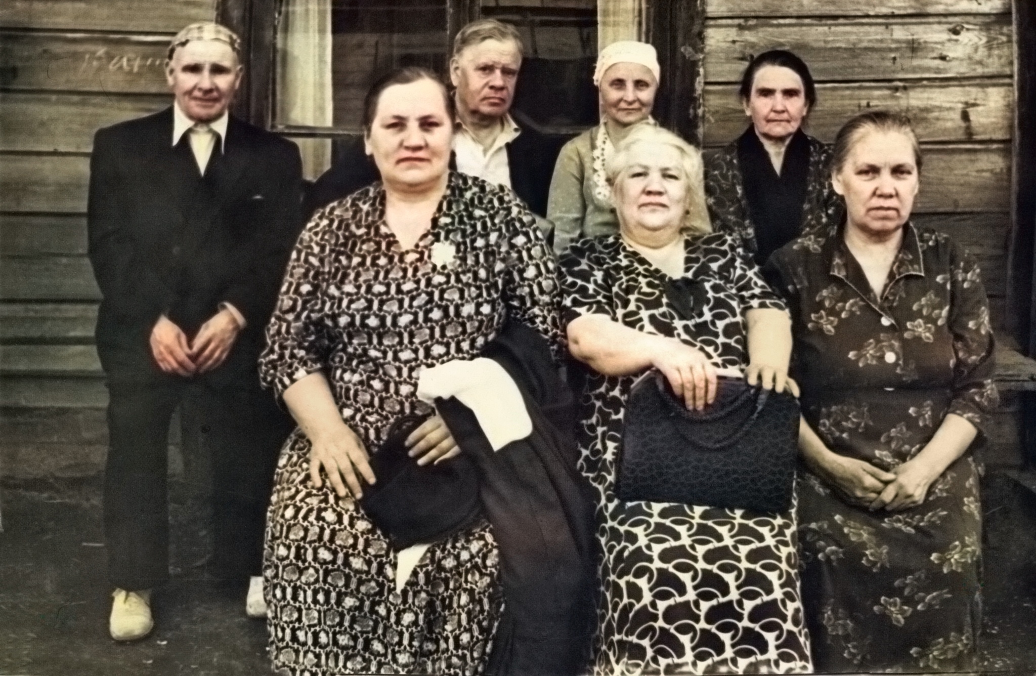 | Изображение | Формат: image/jpeg Размеры картинки: 3 264 × 2 201 пикселей Размер файла: 1 966 Кбайт Примечание: У забора: Акимова Пелагея Николаевна с внуком Карасевым Владимиром Николаевичем, Кайнова Ирина Филипповна, Карасева Матрена Филипповна, Акимов Василий Васильевич. Ближе Карасева Людмила Николаевна, ее сестра Кайнова Надежда Николаевна. Девочки: сестры НаташаЮ Таня и Лена Кайновы, дочки Надежды Николаевны |