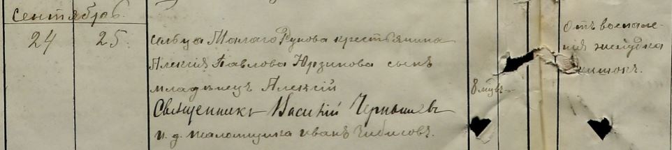 сельца Малаго Рунова крестьянина Алексія Павлова Юрзинова сынъ младѣнецъ Алексій 8 месяцев от воспаления желудка и кишок