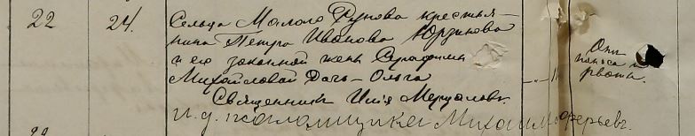 Сельца Малаго Рунова крестьянина Петра Иванова Юрзинова и его законной жены Серафима Михайловой Дочь - Ольга, 10 лет, от поноса и рвоты