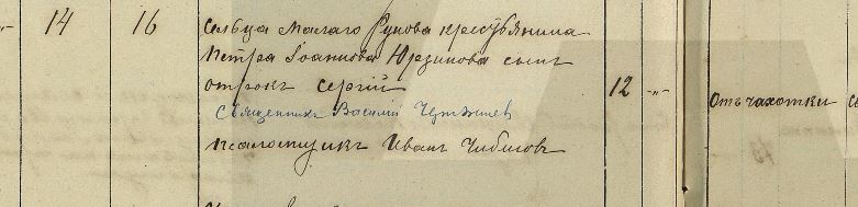 сельца Малаго Рунова крестьянина Петра Іоаннова Юрзинова сынъ отрокъ Сергій, 12 лет, от чахотки