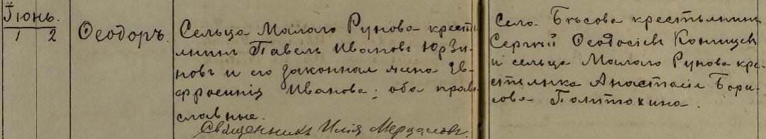 Сельца Малаго Рунова крестьянинъ Павелъ Ивановъ Юрзиновъ и его законная жена Евфросинія Иванова; оба православные