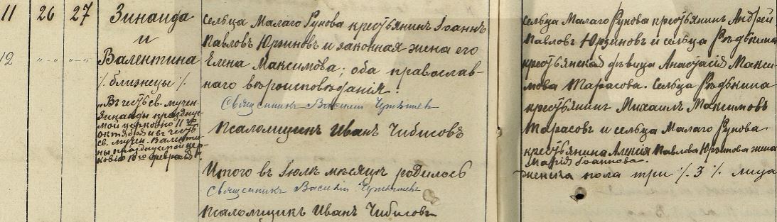 близнецы / Въ честь св. мучен. Зинаиды празднуемой церковно 11-го октября и въ честь св. мучен. Валентины празднуемой церковію 18-го февраля