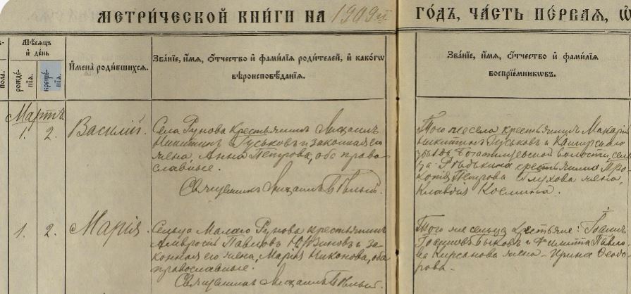 Марiя Сельца Малаго Рунова, крестьянинъ Амвросій Павловъ Юрзиновъ и законная его жена, Марія Николаева, оба православные