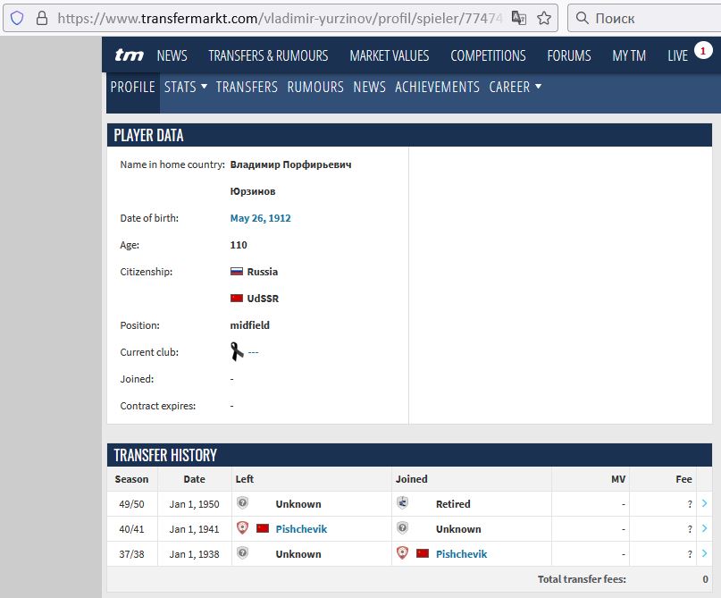 Источник доступен  на внешнем URL (Ref: 1 / https://www.transfermarkt.com/vladimir-yurzinov/profil/spieler/774742)