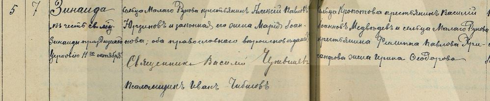 Сельца Малаго Рунова крестьянинъ Алексiй Павловъ Юрзиновъ и законная его жена Марiя Iоаннова; оба православного вероисповедания.