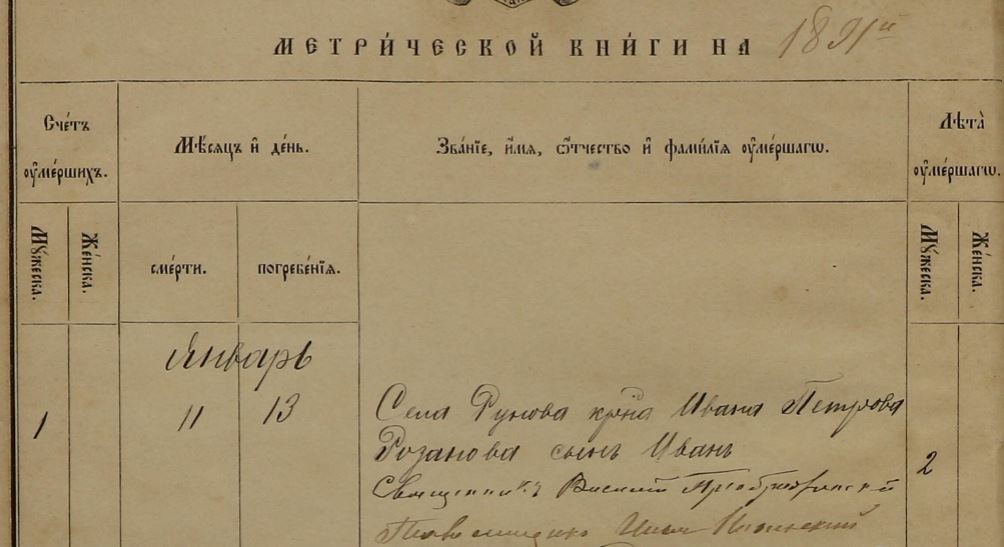 Села Рунова крестьянина Ивана Петрова Розанова сынъ Иванъ двух лет от кори