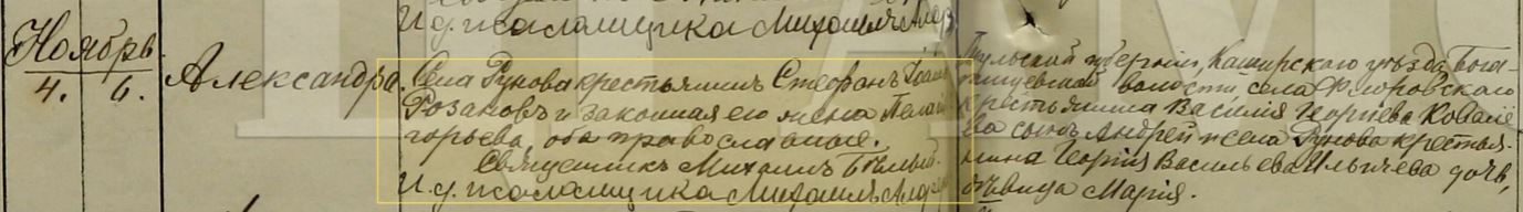 Села Рунова крестьянинъ Стефанъ Іоаннов Розановъ и законная его жена Пелагія Григорьева, оба православные.