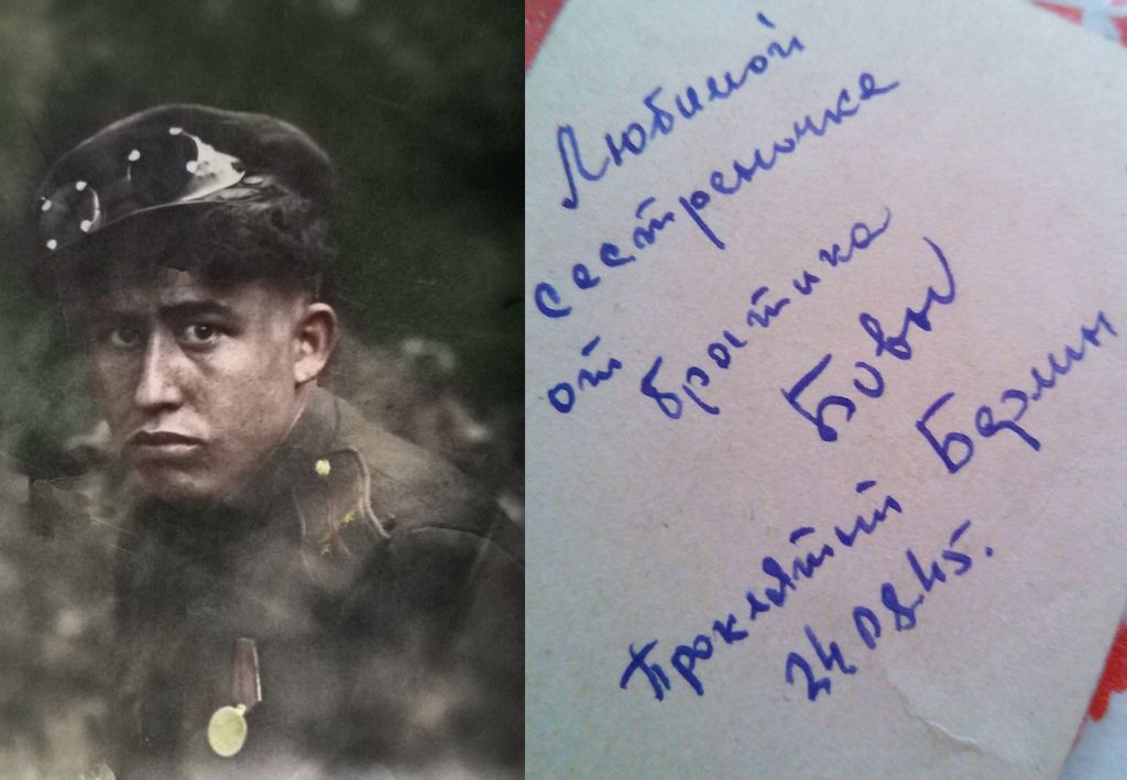 | Изображение | Формат: image/jpeg Размеры картинки: 1 024 × 709 пикселей Размер файла: 90 Кбайт Примечание: Любимой сестрёнке от братика Бовы Проклятый Берлин 24.08.1945 |