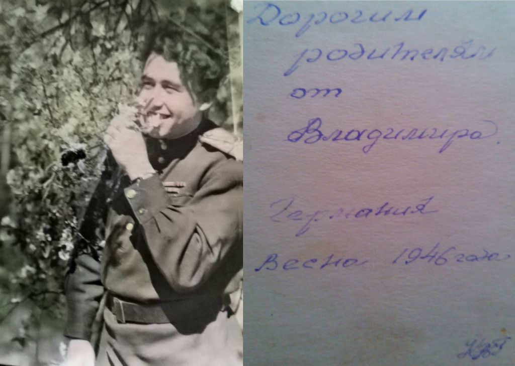 | Изображение | Формат: image/jpeg Размеры картинки: 1 024 × 727 пикселей Размер файла: 97 Кбайт Примечание: Дорогим родителям от Владимира. Германия. Весна 1946 г.