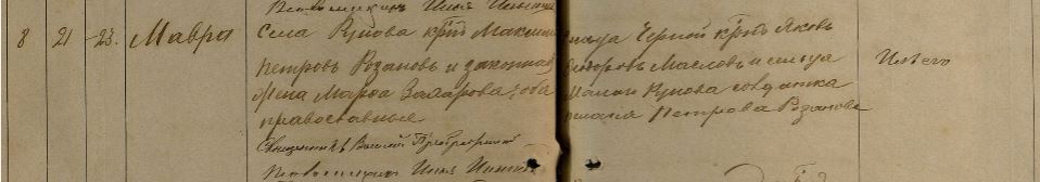 Web-сайт/URL сайта Содержание: Лета 1889 Апреля 21 дня родилась Мавра Родители: Села Рунова крестьянин Максим Петров Розанов и законная жена его Марфа Захарова, оба православные. Воспремники: Сельца Черной крестьянин Яков Федоров Маслов и сельца Малаго Рунова солдатка Пелагiя Петрова Розанова. Метрическая книга для записи родившихся, вступивших в брак и умерших в церквях Каширского уезда Тульской губернии, 1889 г. Фонд №17И, опись №1, дело №128, стр. 279 Примечание: Участвует в рождении восприемницей