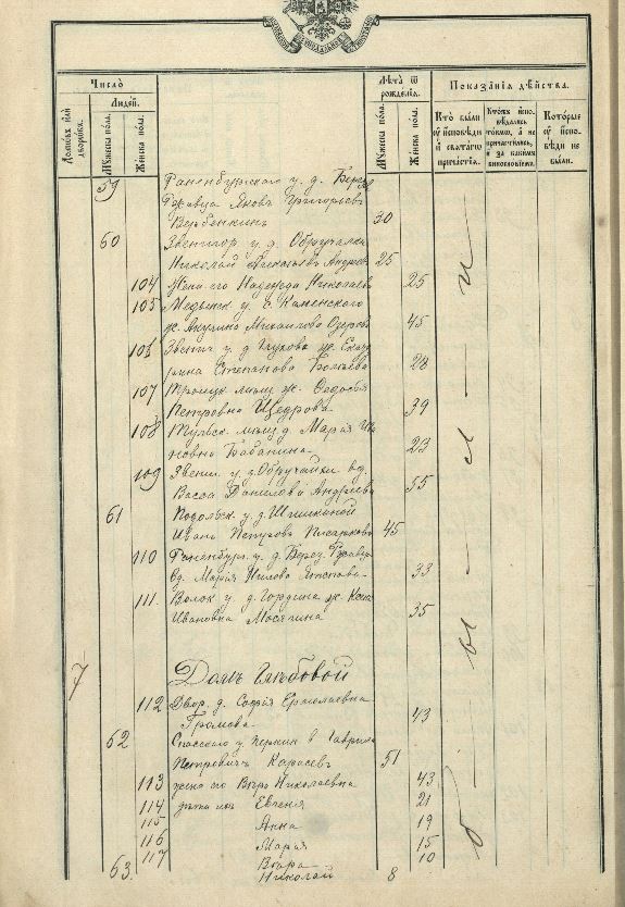 Дата: 1905 Содержание: ИСПОВЕДНЫЕ ВЕДОМОСТИ ЦЕРКВИ НИКОЛАЕВСКОЙ НА КУРЬИХ НОЖКАХ 1 января 1905 — 31 декабря 1907 Фонд №2125, опись №1, дело №976, стр. 10 Архив ГБУ "ЦГА Москвы" Фонд ЦЕРКВИ ПРЕЧИСТЕНСКОГО СОРОКА Г. МОСКВЫ ВЕДОМСТВА МОСКОВСКОЙ ДУХОВНОЙ КОНСИСТОРИИ. Опись 1 Домъ Глѣбовой Двор. д. Софія Ермолаевна Громова Спасскаго у. Перкин. в. Гаврила Петровичъ Карасевъ 51, жена его Вѣра Николаевна 43, дѣти ихъ: Евгенія 21 Анна 19 Марія 15 Вѣра 10 Николай 8 Для просмотра скринов нажимайте иконку: |