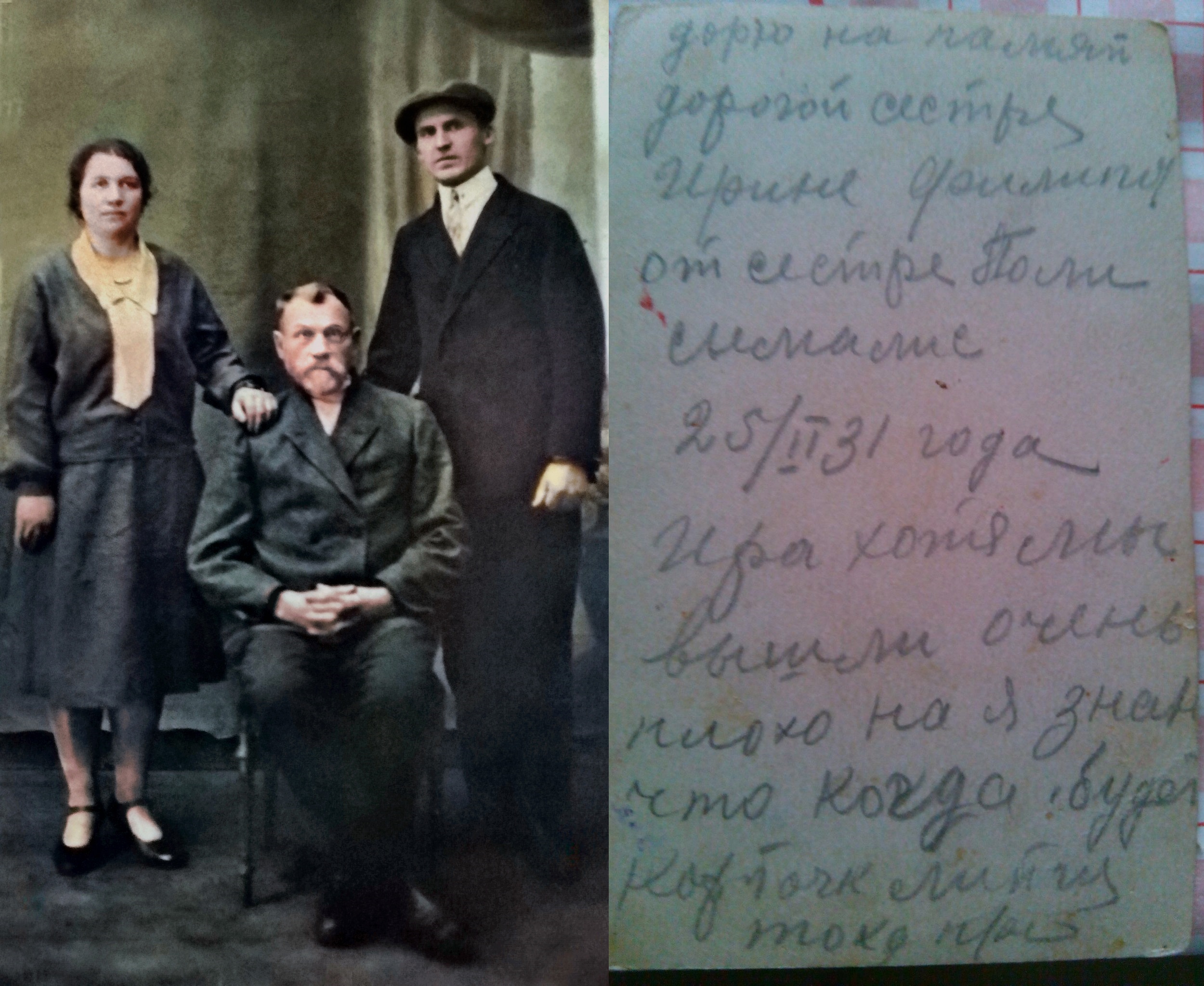 | Изображение | Формат: image/jpeg Размеры картинки: 2 500 × 2 048 пикселей Размер файла: 1 175 Кбайт Примечание: Подпись: "дарю на память дорогой сестре Ирине Филлип. от сестры Поли. Сымалис 25/II31 года. Ира хотя мы вышли очень плохо но я знаю что когда будет карточк" далее неразборчиво