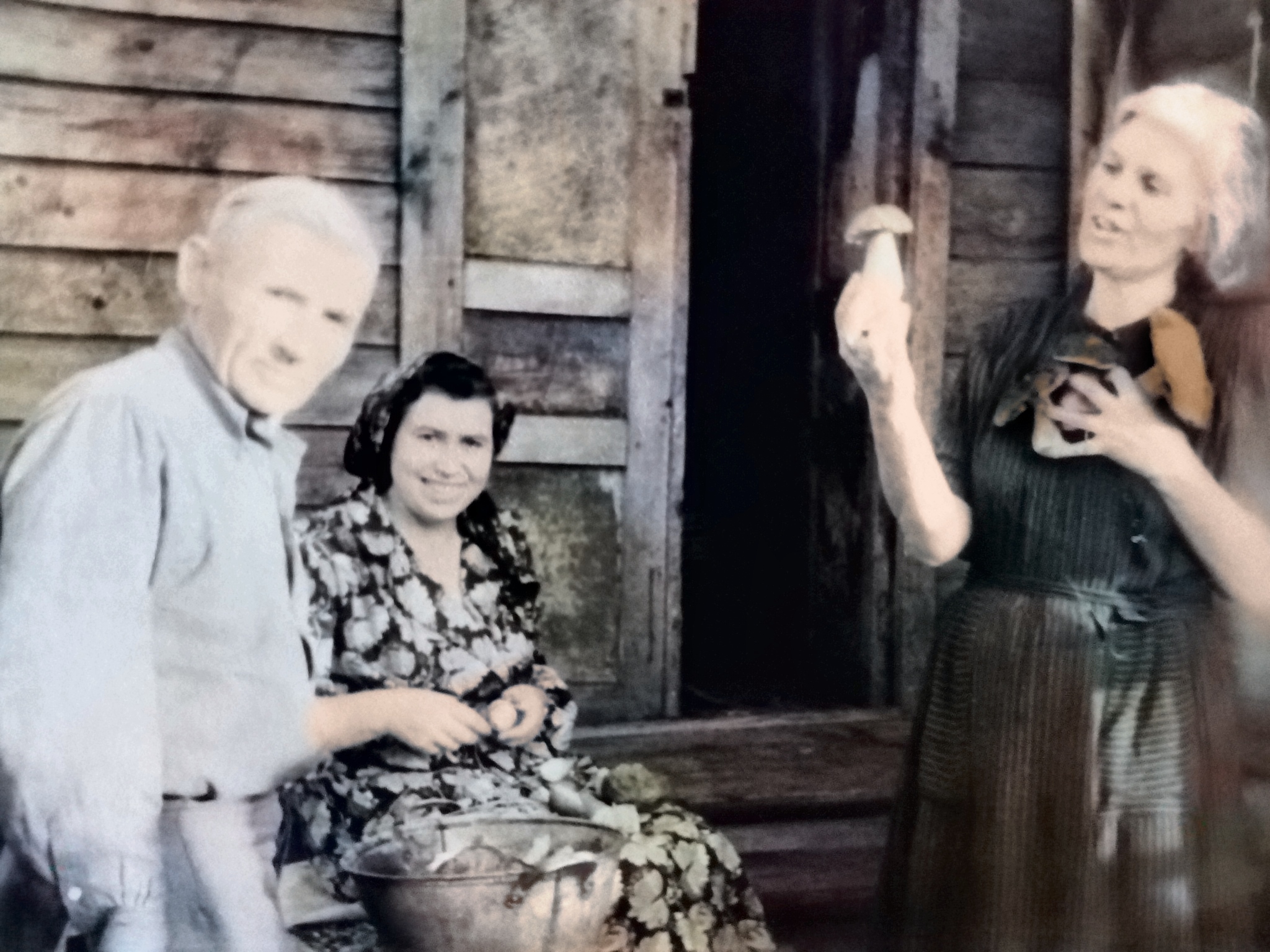 | Изображение | Формат: image/jpeg Размеры картинки: 2 048 × 1 536 пикселей Размер файла: 1 142 Кбайт Примечание: Слева направно: Кайнов Георгий Федорович, его дочь Клавдия Георгиевна и их соседка по дому Ольга Фроловна, держит гриб