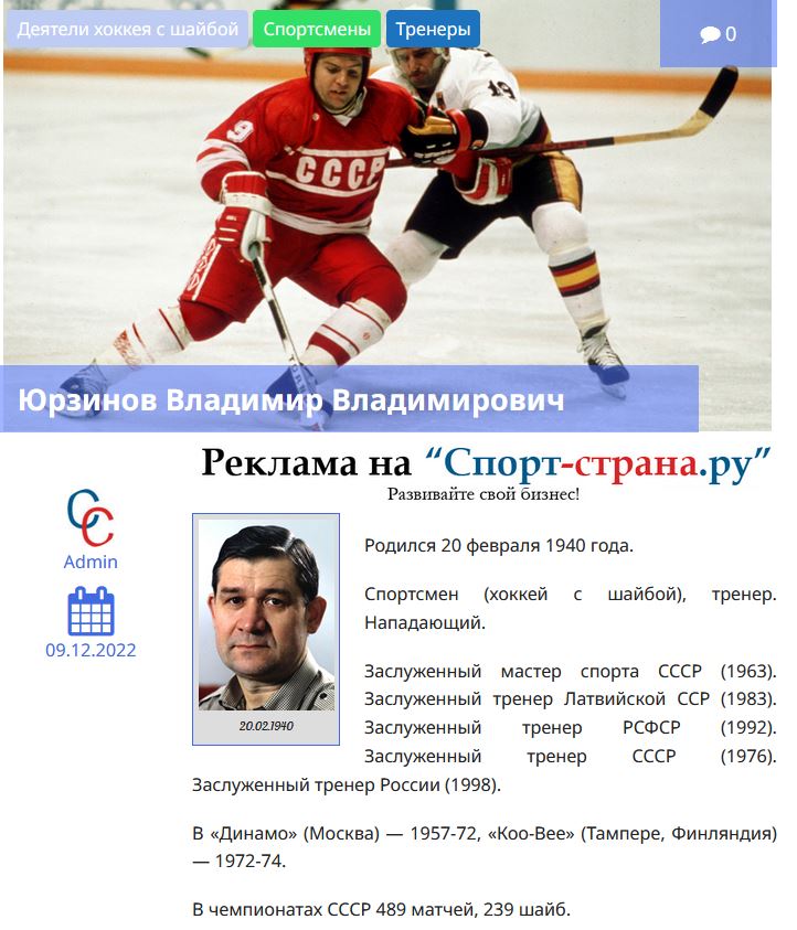 ФИО: Владимир Владимирович /Юрзинов/ Информация: Примечание: старший Род занятий: хоккеист Рождение: 20 февраля 1940 27 — г. Москва |