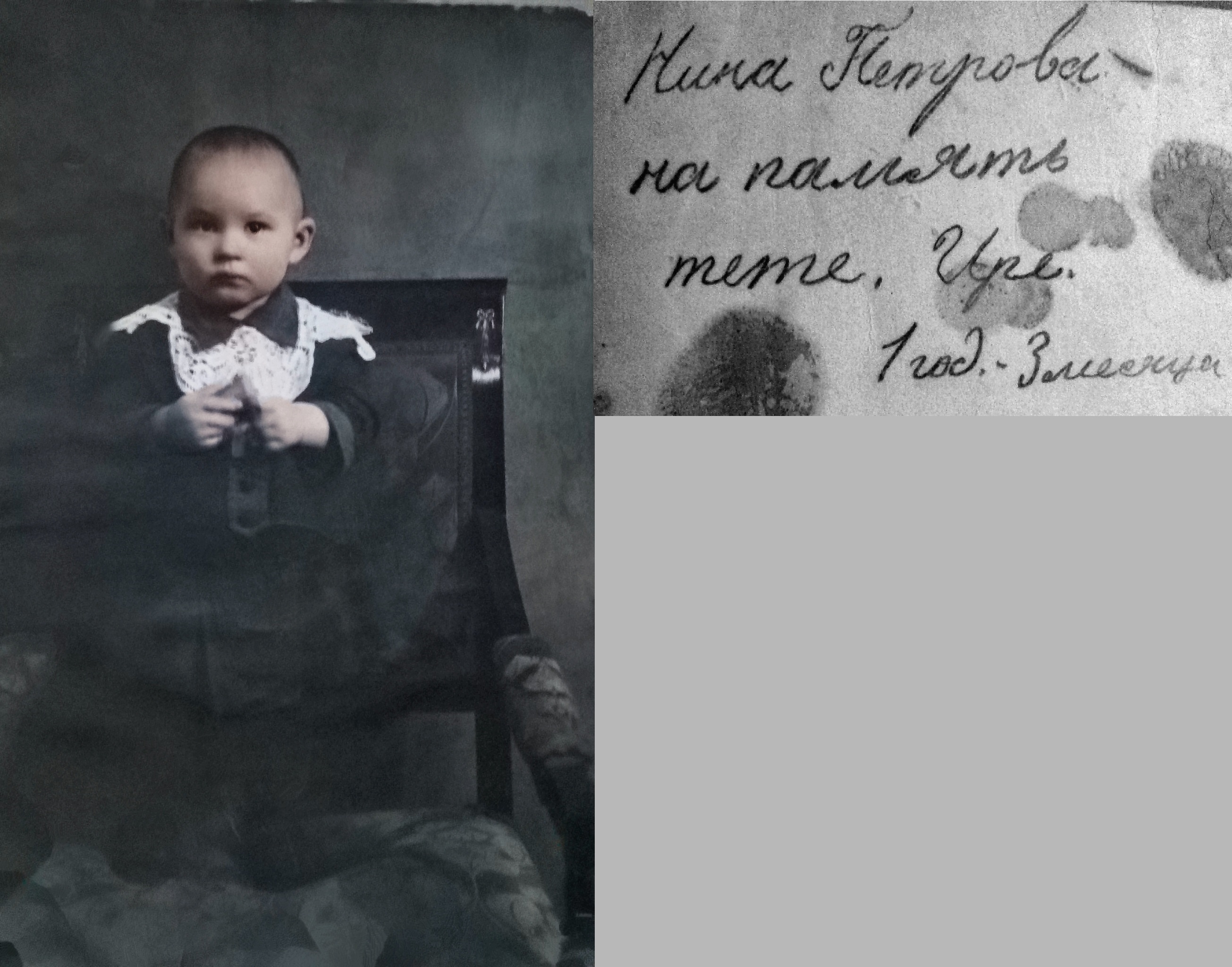 | Изображение | Формат: image/jpeg Размеры картинки: 2 610 × 2 048 пикселей Размер файла: 1 085 Кбайт Примечание: Подпись: "Нина Петрова на память тете Ире. 1 год 3 месяца"