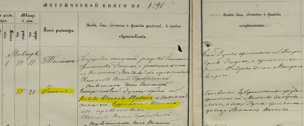 | Note | Метрическая книга для записи родившихся, вступивших в брак и умерших в церквях Каширского уезда Тульской губернии, 1890 г. Фонд №17И, опись №1, дело №129, стр. 170 Найден еще один источник записи о рождении: https://ya.ru/archive/catalog/1515a534-dc0a-4ab9-8e0f-9937becc7d51/237 По ссылке явно иной документ, информация о рождении та же, все, кроме восприемников. |