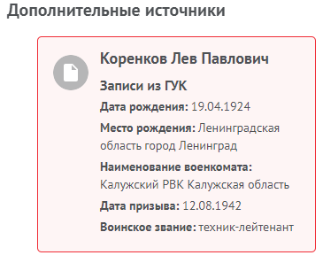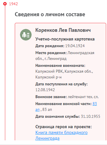 | Title | Сведения о Льве Коренкове из учётно-послужной картотеки