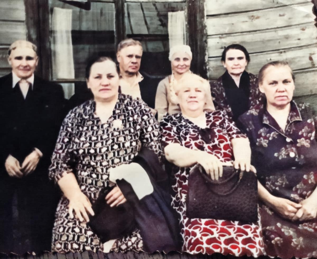 | Изображение | Формат: image/jpeg Размеры картинки: 1 200 × 980 пикселей Размер файла: 138 Кбайт Примечание: Позади: Карасёв Николай Гаврилович, Акимов Василий муж Пелагеи Филлиповны (называли Полиной, баба Поля), остальные неизвестны впереди Кайнова Матрена Филипповна, Акимова Пелагея Филипповна, неизвестная женщина |