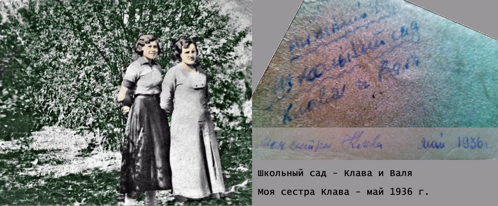 | Изображение | Формат: image/jpeg Размеры картинки: 1 024 × 425 пикселей Размер файла: 120 Кбайт Примечание: Школьный сад, Клава и Валя, моя сестра Клава май 1936 г.