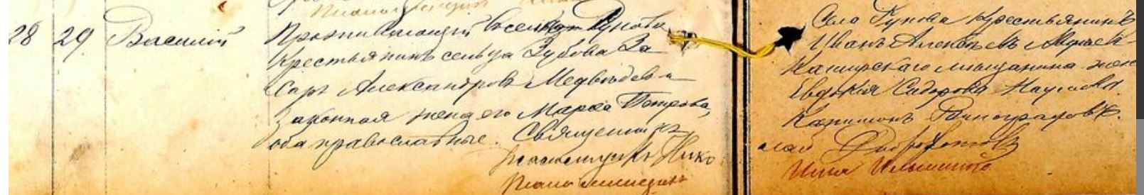 | Рождение брата | Василiй Захаровъ Медведев 28 июля 1885 (Возраст 9 лет) Источник: Рождение Василiя Захарова Медведева Внешний ресурс: Web-сайт/URL сайта Содержание: Июля 28 дня родился Василiй Родители: Крестьянин сельца Зубова Захар Александров Медведев и законная жена его Марфа Петрова, оба проовославные. Восприемники: Села Рунова крестьянинъ Иван Алексеевъ <...> и Каширского мещанина жена Евдокiя Сидорова Наумова. Примечание: https://arch.mosreg.ru/srv/private/imageViewer/show?objectId=2176512281&attributeId=5908&serial=1&group=4688&ext=.jpg Страница 137 Просмотреть информацию по этой ссылку могут только зарегистрированные на портале https://arch.mosreg.ru пользователи |